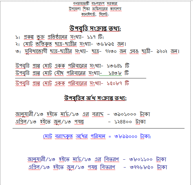 | ৫ | কানাইঘাট উপজেলার প্রাথমিক বিদ্যালয়ের উপবৃত্তি সংক্রান্ত তথ্য | | দেখুন |