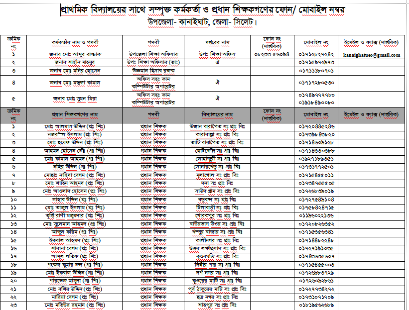 | ৩ | শিক্ষা অফিসে কর্মরত কর্মকর্তা, কর্মচারী এবং অত্র উপজেলার সকল প্রাথমিক বিদ্যালয়ের শিক্ষকগণের মোবাইল নাম্বার | | দেখুন |